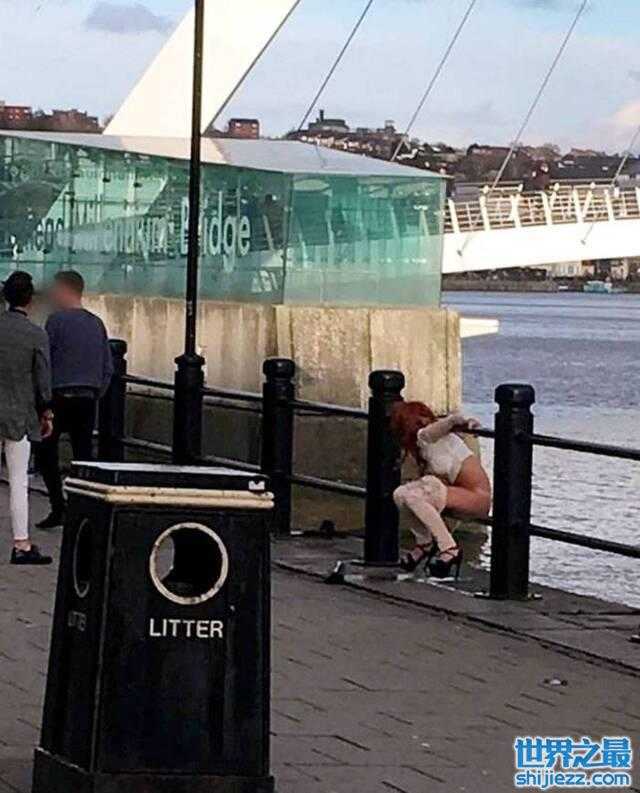 英国纽卡素少女在码头当众便溺遭网民抨击