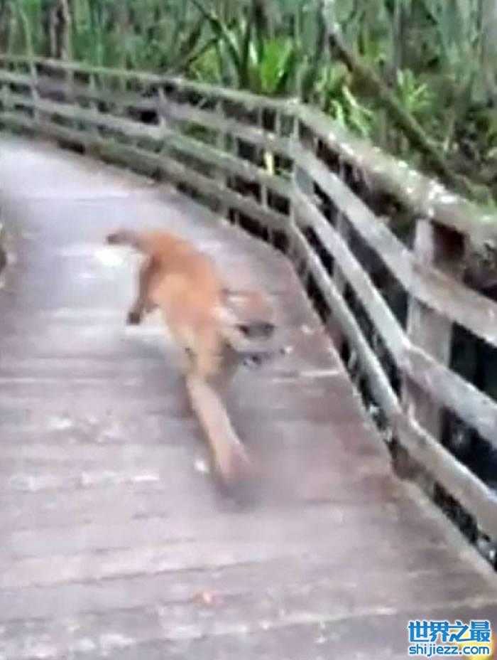 美国女子清晨到沼泽保护区健行,一只山狮从身边跑过