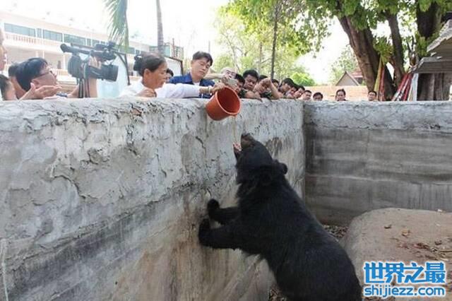泰国游人伸手喂黑熊 遭咬去右臂的肉