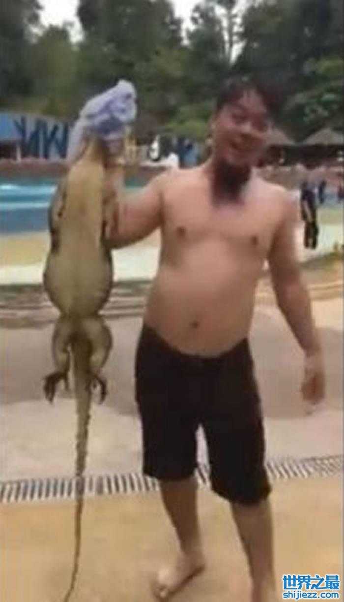 游客在水上乐园玩竟看到泳池里有只比手臂还长的大蜥蜴吓了一大跳,这只大蜥蜴或许被打扰,当时正想攻击一对情侣,其中一人被咬伤,最后在众人合作之下被捕捉,事件传上社群网站引起讨论。