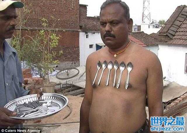相关报道:印度真人万磁王!特异功能胸口吸汤匙、铁钉