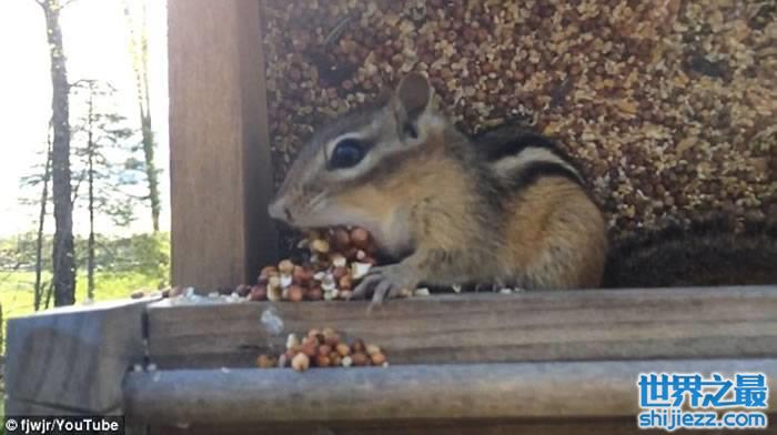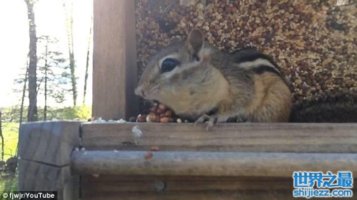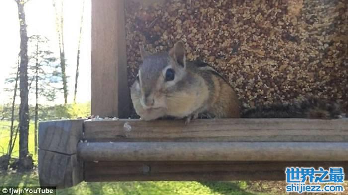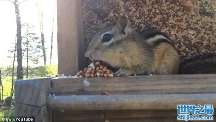 松鼠嘴巴可以塞几多食物?美国一名男子日前在其喂鸟器上,发现了一只面颊严重肿起的贪食花栗鼠。结果,花栗鼠眼见事败,竟从口中吐出一大堆“贼赃”,连拍片者都愕然。