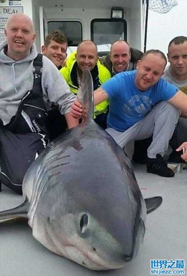 英国6名钓鱼发烧友半小时钓起450磅巨型鼠鲨