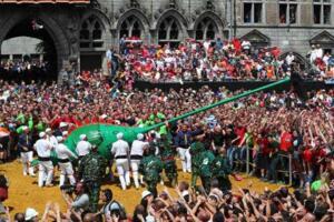 蒙斯是位于比利时南方的小城镇,每年这里都会巨型一场极为盛大的宴会——屠龙节。屠龙节起源于公元14世纪,是蒙斯小城一年一度最重要的节日,节日的时间是复活节后的第八个星期日,至今已经有600多年历史了。在2005年的时候,这一传统节日更是被联合国教科文组织列为了“人类口头和非物质文化遗产代表作”