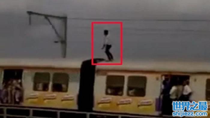 印度青年不要命,在火车顶玩“冲浪”