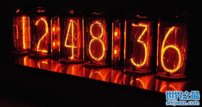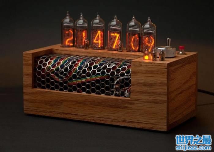 Nixie Clock以真空管内的发光金属线圈显示时间。