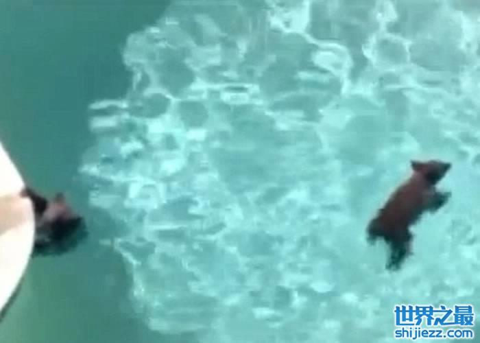 美国加州熊妈妈带同幼子走入社区畅泳消暑