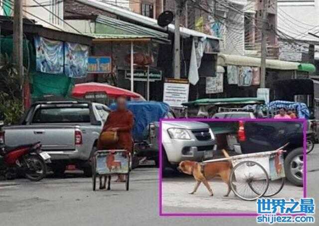 泰国老僧人疑迫狗狗拉车化缘