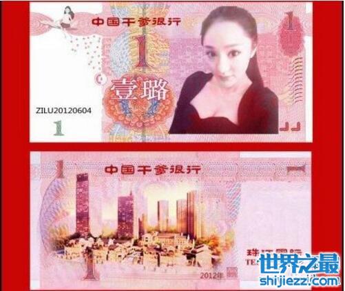 炫富女杨紫璐的干爹币,称1璐=10万元(网友恶搞)