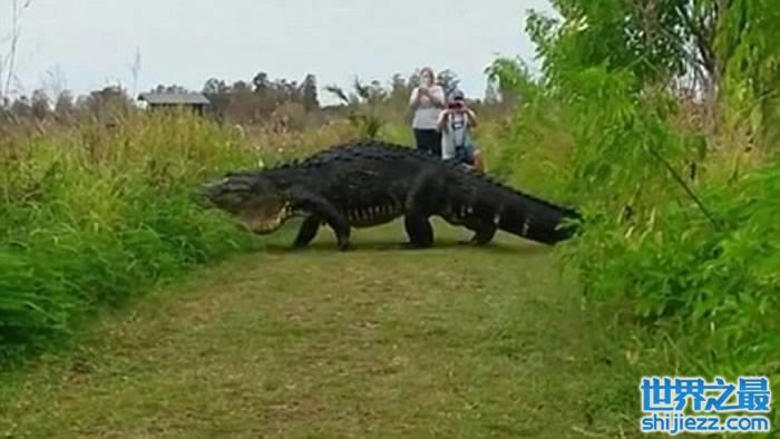 谈起美国佛罗里达州,很多人都会想起当地经常有巨鳄横行。有民众日前在当地一个自然保育区郊游时,遇上一条超巨型鳄鱼从草丛爬出。由于这条鳄鱼异常巨大,令人感觉回到史前世纪,看见“恐龙”出没一样。