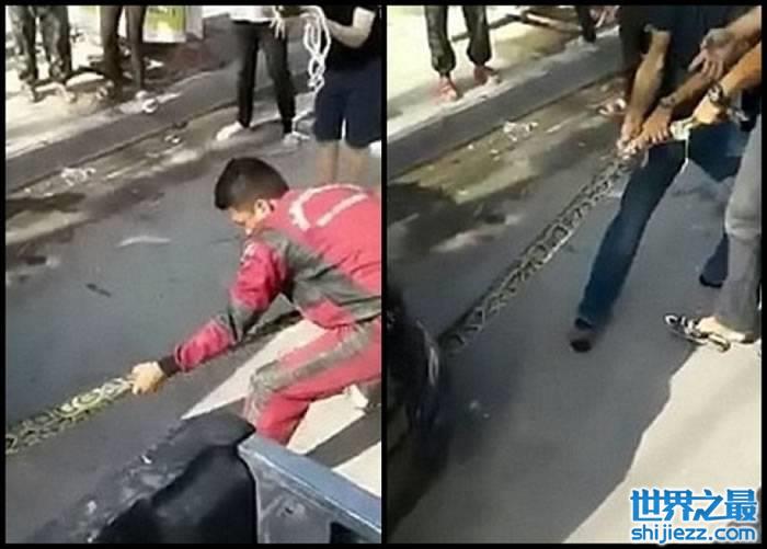 泰国呵叻府3.6米长巨蟒跟“蛇王”斗力终被擒