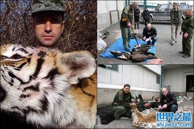 罗曼诺夫曾拿着西伯利亚虎的虎皮拍照。