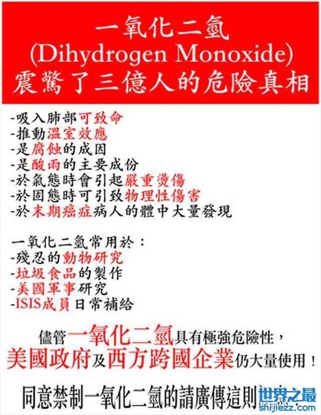 “一氧化二氢”震惊了三亿人的危险真相?水有害的恶作剧讯息