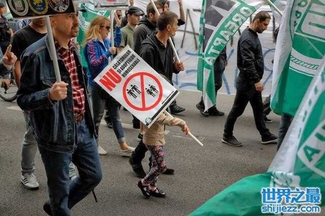 当天较早时,一批反同性恋者游行,反对同性夫妇领养孩子。