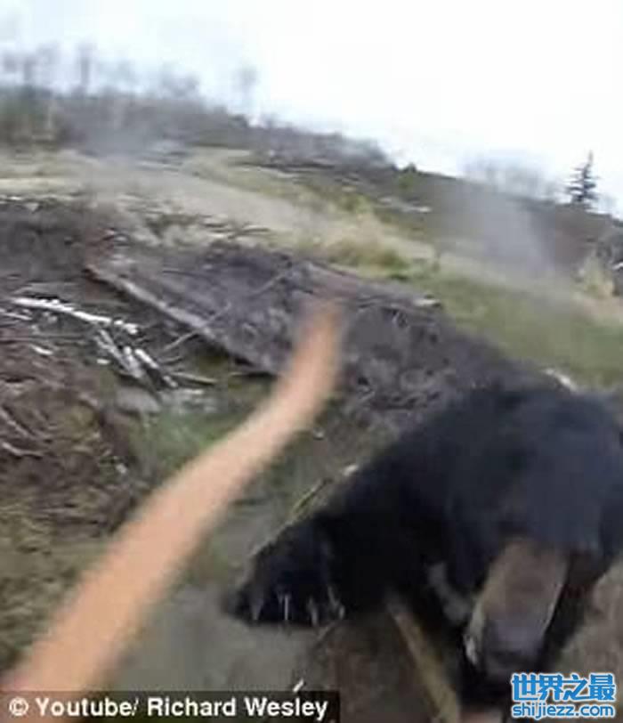 黑熊整只扑向韦斯利,他立刻失平衡倒在地上,摄录器亦跌在地上,但继续拍摄当时情况。他以手上弓箭阻挡黑熊的血盆大口,最终成功站起来逃跑,仅擦伤手肘。他其后受访时指,自己应该在见到黑熊时就一早射向它。未知黑熊最后是生是死。