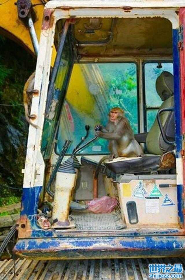 山中无老虎:台湾一只猴子坐在挖土机驾驶座上装模作样操作 ...