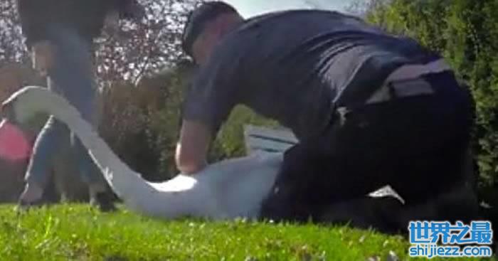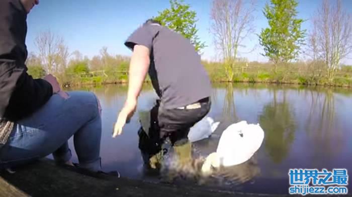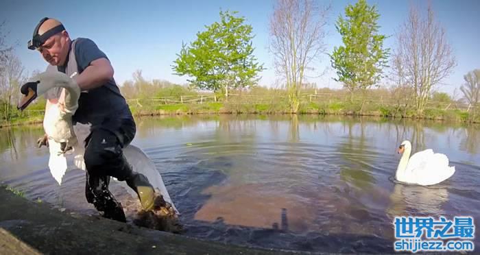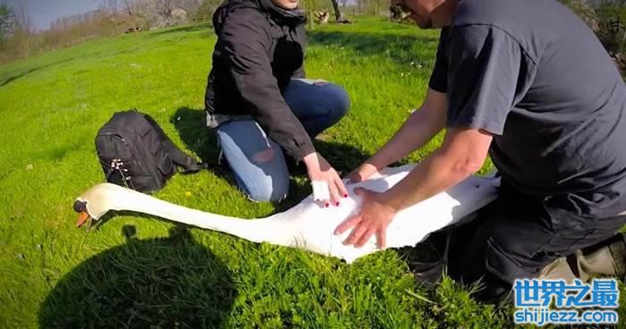 德国一名动物救护专家日前接报,为一只严重受伤的野生天鹅治理,同行人员将其诱捕及治理天鹅的过程拍下来。