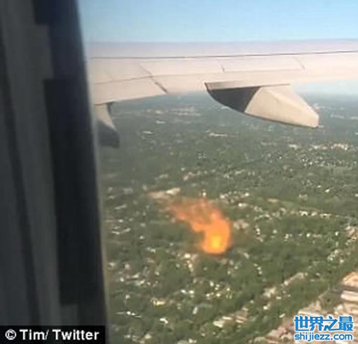 美国联合航空客机起飞没多久有只小鸟被吸进引擎内 飞机不断喷出火焰 ...