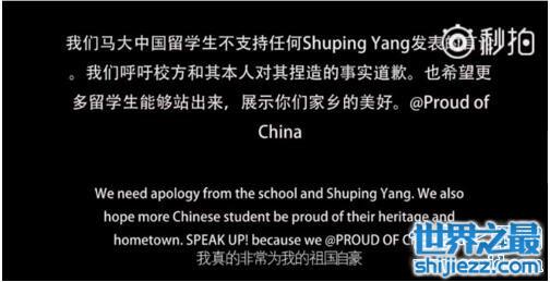 视频最后,马里兰大学的中国留学生表示不支持杨舒平发表的言论,并呼吁校方和其本人对捏造的事实道歉,也希望更多留学生能够站出来,展示家乡的美好。
