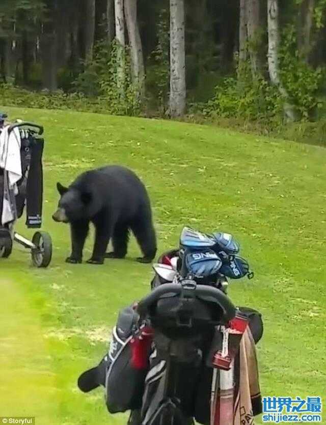 美国阿拉斯加安克雷奇的高尔夫球场黑熊宝宝叼走包包默默走回树林 ...