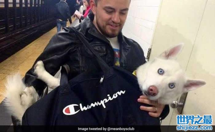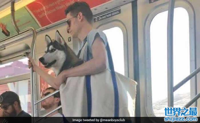 美国纽约地铁公布“狗狗只要装袋就能上车”,饲主们带着毛小孩搭车的趣味情况层出不穷