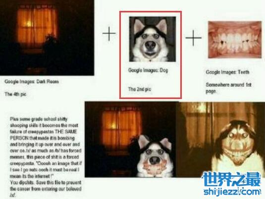 再加上这个微笑狗有着诡异的红色背景,恐怖的眼神以及和人类相似的牙齿,怎么看都是怪物。有的人说,再看这张微笑狗图片的时候,甚至能够感觉得到图片中的狗开始动了,甚至张开了血盆大口,微笑狗为什么吓人就是这样,让人产生一种幻觉。