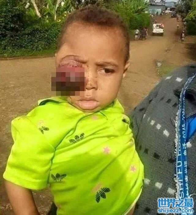 非洲巴布亚新几内亚男童眼瘤大如拳头 家人误信巫医险送命