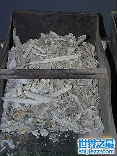 就这样,尸体在焚烧半个小时后,就基本焚烧殆尽,有的还要翻一转,继续烧,最后,一个小时的时间,火化过程基本完成,从炉门退出烧得几乎发红的台子,冒着很大的白烟,还有一股肉骨头的味道。等到它冷却下来之后,就可以看到台子上有一个人形的骨灰和一些碎骨头,一般大一点的是大腿骨和头骨,不过也变得非常脆了,用东西一压就碎掉了,只有极少的还是有点硬。