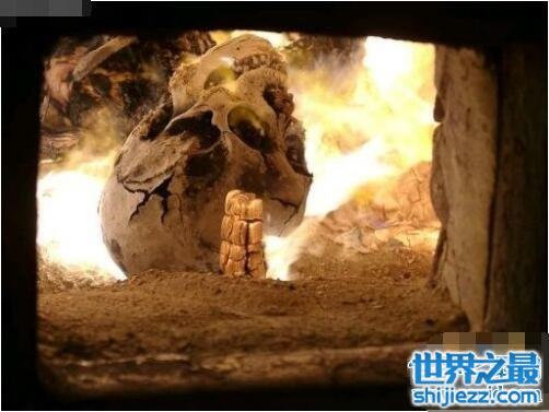 火化过程下一步才是开始燃烧,像烤肉一样的烧。首先被烧掉的是毛发,还有瞬间被烧的吱吱响的皮肤,里面温度是非常高的。紧接着肌肉组织和内脏也会变成火球,剧烈的燃烧。之后就会看到骨头露出来,尤其是头部非常明显,因为头发瞬间就没有了,光秃秃的一片。眼睛也会变成两个黑洞。