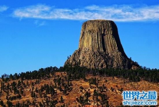 美国魔鬼塔是个庞然大物,耸立在怀俄明州的平原上。它是方圆数十里范围内的最高点,在晴朗的天气里,人们能从160公里以外看到魔鬼塔。魔鬼塔之所以如此著名,是因为魔鬼塔是传说中的外星人基地。