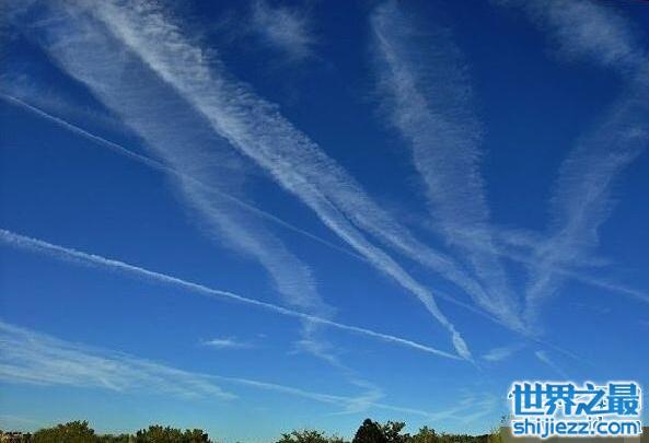 甚至还有飞机喷出水汽形成的航迹云(俗称“飞机拉线”),也被指为“地震云”,难道飞机飞过也是地震征兆?