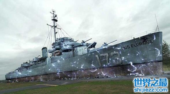 故事开始于1943年6月,它的主角是美国海军编号为DE-173的护卫驱逐舰“爱尔德里奇”号。它上面安装了数吨电子实验设备。其中,每台功率为75千瓦的两台大型磁场发生器被安装在前炮塔的位置,它们产生的磁力通过安装在甲板上的四组巨大的线圈进行分配。