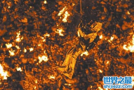 而一直以来,因为土库曼斯坦地狱之门的超高温大火的原因,从来不敢有人涉足此地,也没有见过土库曼斯坦地狱之门到底是什么样子的,只知道是一场熊熊不灭的烈火。直到2013年冬季,世界著名的冒险家乔治·康罗尼斯冒着超过1000摄氏度的高温,下降30.48米进入这个满是火苗的大坑……