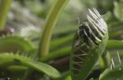 捕蝇草是一种依靠将整片叶子合拢起来逮住虫子的食肉植物。它的捕虫夹能如贝壳一样感受外部的刺激,并以极快的速度闭合,但贝壳是为了防御,而它却是主动进攻,捕获昆虫等猎物。在捕获小虫子之后,捕蝇草的捕虫夹就会分泌一种液体将其消化掉。
