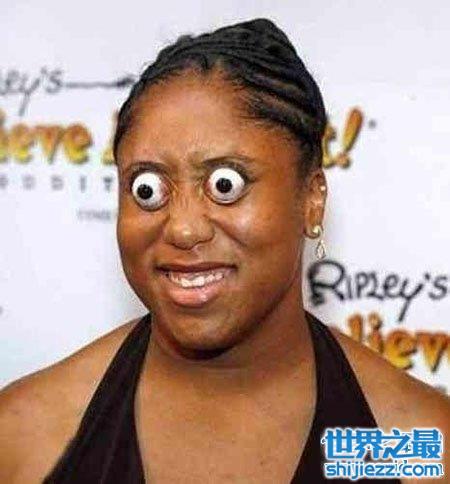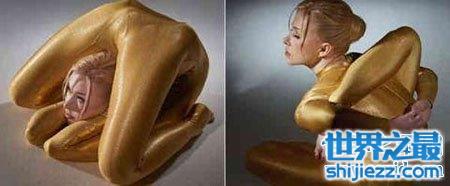 但她依旧立誓永远不会减去自己的长发。世界上最凸出的眼球:美国人金·古德曼能使她的眼球能够突出眼眶外11毫米。这一才能的发现源于一次头部受到的碰击,从击只需她一打呵欠,眼睛就能够吐出眼眶之外了。只是看起图来有点吓人。世界上最柔软的人:俄罗斯人Zlata,身高1.75米,体重仅有54公斤。