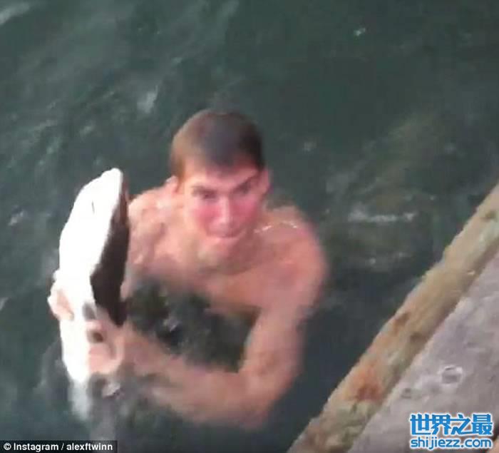 美国华盛顿州青年徒手捉濒危鲨鱼 网民斥傲慢和愚蠢