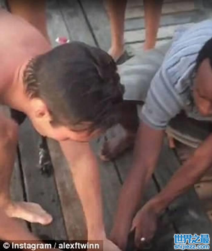 19岁的温(Alex Winn)当天与友人到自由海湾(Liberty Bay)游玩,期间他突然潜入水中,大胆地用双手捕捉鲨鱼。从他上载到个人Instagram的影片可见,被擒鲨鱼被放到地上,并一度挣扎。温与友人把它捉着让众人拍摄。