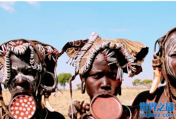 其实世界上还有一些奇特的部落,比如说摩尔西族就是一种女性装饰唇盘的民族,也就是一种将下嘴唇拉长,将嘴撑得很大的习俗,最终形成一种大盘子嘴的奇特景象。据说在这个民族的女人嘴唇上装饰的盘子越大,身价越高,唇盘最大的女孩子的父母能够得到50头牛的彩礼,是该族一种致富的手段。