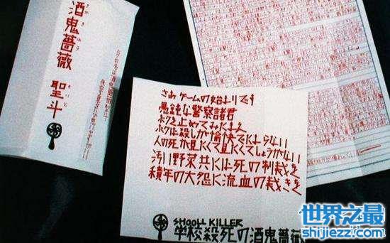 日本的酒鬼蔷薇圣斗事件是一件非常恐怖的连环杀人案,比绫濑水泥杀人案还可怕,案件中有不少分尸和猥亵的经过,许多事件合起来令人发指,凶手在被抓的时候,大家才发现原来这些凶残的行为竟然是一名14岁的少年做的。