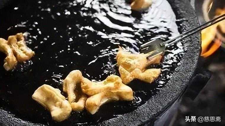 聊到秦桧等人陷害岳飞时,俩人越说越来气,其中有个人便从面板上揉了两块面团,捏成秦桧夫妇模样,另外一人把锅里烧得滚烫的油,俩人把面板上的俩面团扔进去,于是“油炸桧”就出现了,这就是油条最初的原型,经过后人的不断改造,油条就变成了现在我们看到的样子。