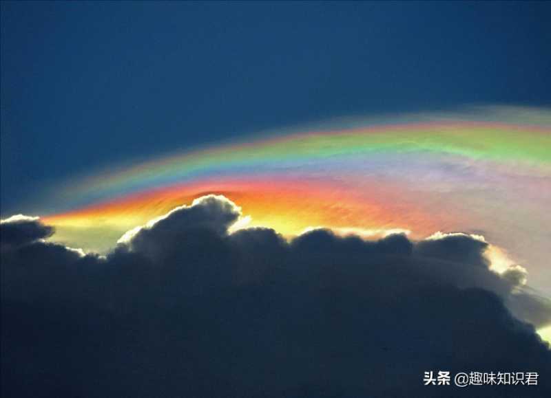 8、火焰彩虹又被称为彩虹云,顾名思义就是彩虹和卷云的结合,是一种极为罕见的天气现象,产生的条件也是极为苛刻,只有太阳位于天顶,并且卷云含有冰晶,再加上正好形成了完美的60度角时才会产生彩虹云。
