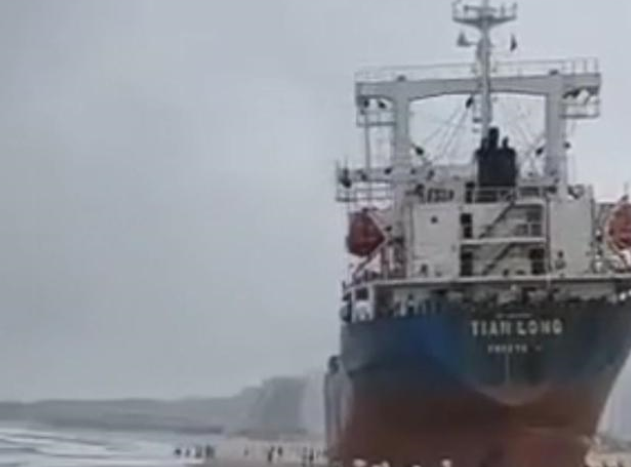 阳江海滩惊现一膄巨轮 船员听不懂中文应该是外国人(游轮搁浅)