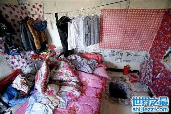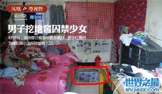 陈小龙他为了防止事情的泄露,他还在出租屋外面又加了一层围墙,并且还安了围墙,上面还都用铁钉焊着外面还用土堆起来,这个洞口就在他的床边,这个洞口四周只有半米,深有1.5米左右洞口仅仅只用一个纸板进行掩盖,打开就能够下到地窖中,里面有一扇小门,可以从外面进行上锁。