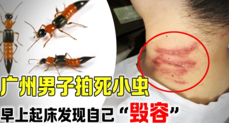 广州男子拍死一只小虫子 醒来之后发现自己毁容(隐翅虫)