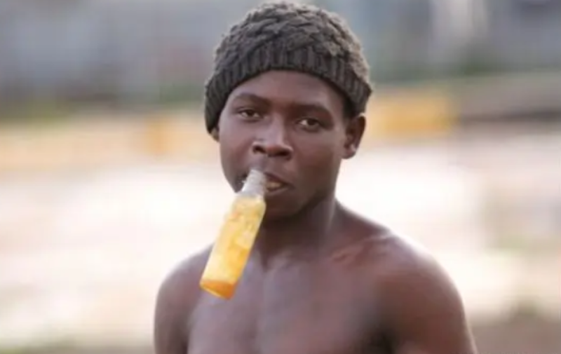 当我们来到内罗毕贫民窟的时候,可以看到有一些青少年甚至是中年人,手里拿着一个瓶子,然后把这个瓶子靠近自己的鼻子,狠狠地闻上几下,然后就像是中毒了一样,直接倒在地上开始昏睡,这其实就是他们的毒品,但并不是这么稀奇古怪的东西而是胶水,除此之外还有飞机的航空燃油也是他们的主要选择。