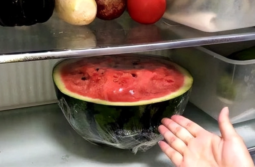 现在依然是有着很多的家庭吃不完西瓜或者水果之后就会切一半放到冰箱里面,但是有很多家庭又没有使用保鲜膜的习惯,所以说水果表面就会附着很多的细菌菌落,在这样的情况下,我们有两种解决办法,一方面就是在切西瓜或者其他水果的时候,用刀之前一定要好好的清洗一下,最好可以有一个专门切水果的,到第二就是放的时候最好覆盖上保鲜膜。