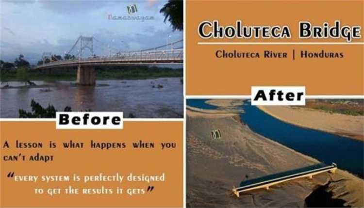 这座桥梁还没有建立好多长时间就有了一个飓风侵袭,这一场飓风过去给当地至少带来了15000人的死亡,并且还带来了毁灭性的暴雨,短短15天的降雨量相当于北京四年,在这一场大风之下,建立好的桥梁完好无损,这笔钱并没有白花,但是当洪都拉斯人看到这座桥的时候,心态却崩了,并不是桥的原因,而是因为桥下面的河流改道,花了很大代价建立起来的坚固桥梁,现在居然成为了一个摆设。