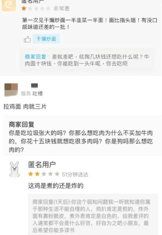 在2022年3月份上海一个顾客在点了一份外卖之后,感觉外卖的味道不好,所以就给了商家一个差评,随后商家在下面辱骂顾客,并且打电话威胁顾客,该男子就和商家对骂了起来。这个商家说我知道你的地址,我马上就去打死你。该顾客以为这是商家在说狠话并没有在意,没有想到在40分钟之后有人敲门,居然真的是商家带了一把砍刀上来要对付顾客,顾客并没有开门,而是拨打了报警电话。在这期间,卖商家在外面疯狂叫嚣,并且用刀砍了顾客的家门。