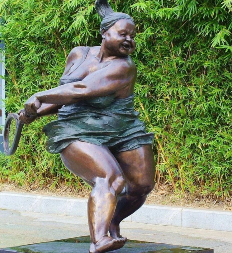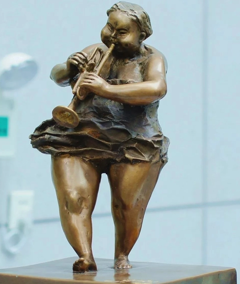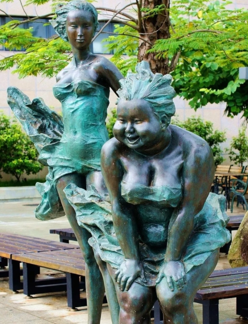 这个雕塑是出自广州雕塑学院院长的一个作品,通过图片可以看到这个雕塑上面的女孩儿身材臃肿。在嘴巴里面正在吹着乐器,另外还有一些比较明显的对比,比如说让一个微胖的女孩和瘦的女孩同样穿着裙子。但是这样的雕塑确实网友们的热议。