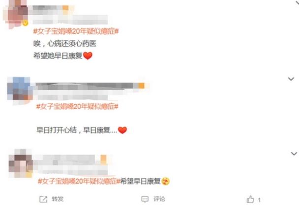 很多网友在看到这个新闻之后也是给出了暖心回复表示徐女士最好可以打开自己的心结,至于是什么苦大仇深的事情,还是只有自己知道,生活中很多病情都是和心情有关,能够调整好自己的心态,就可以自然而然的避免很多疾病。